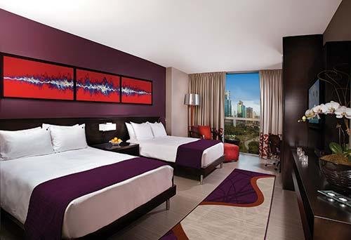 The awe-inspiring, 66-story tower is located in the heart of Panama City, Panama. Accommodations feature signature Sleep Like a Rock bedding, floor-to-ceiling windows, customized in-room music offerings, and rock-inspired artwork. By day, relax poolside, be pampered at the on-site spa and salon, and shop for couture and collectibles at the Rock Shop. When the sun sets, experience the excitement and energy of the Hard Rock brand through exhilarating music, innovative dining, and high-action gaming. The Multicentro shopping center and the Panama Canal are nearby.